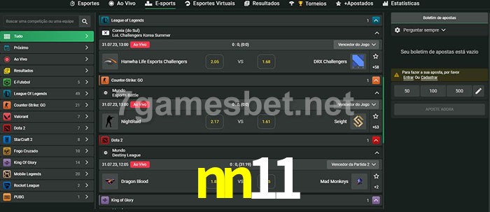 O nn11 oferece uma grande seleção de opções de apostas em e-sports com probabilidades competitivas